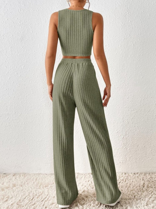 Round Neck Short Sleeve Top and Drawstring Pants Set